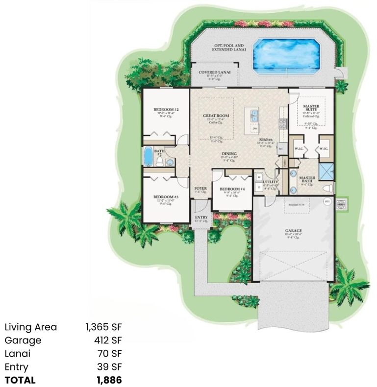 Total Area 1886 Sq. Ft