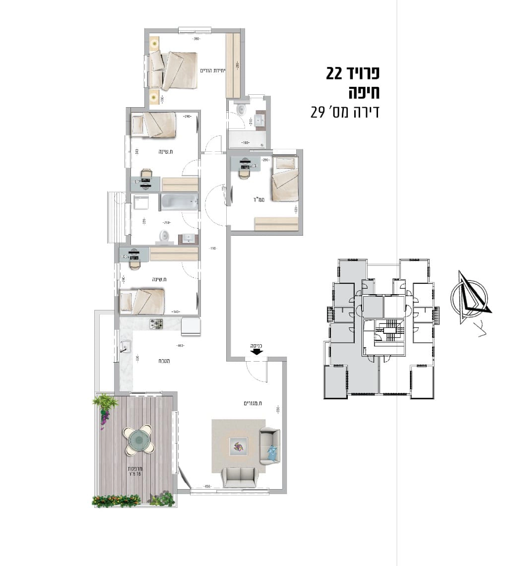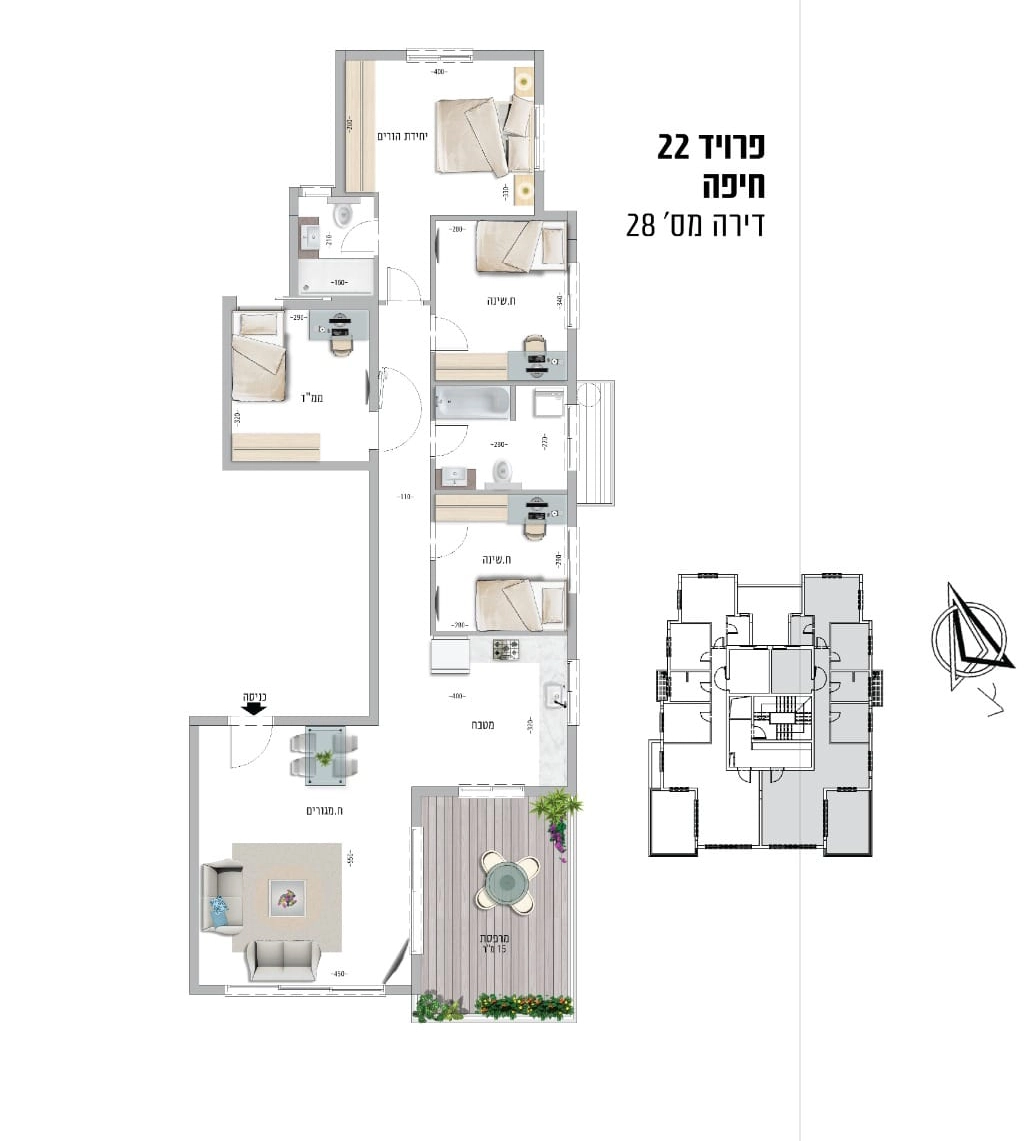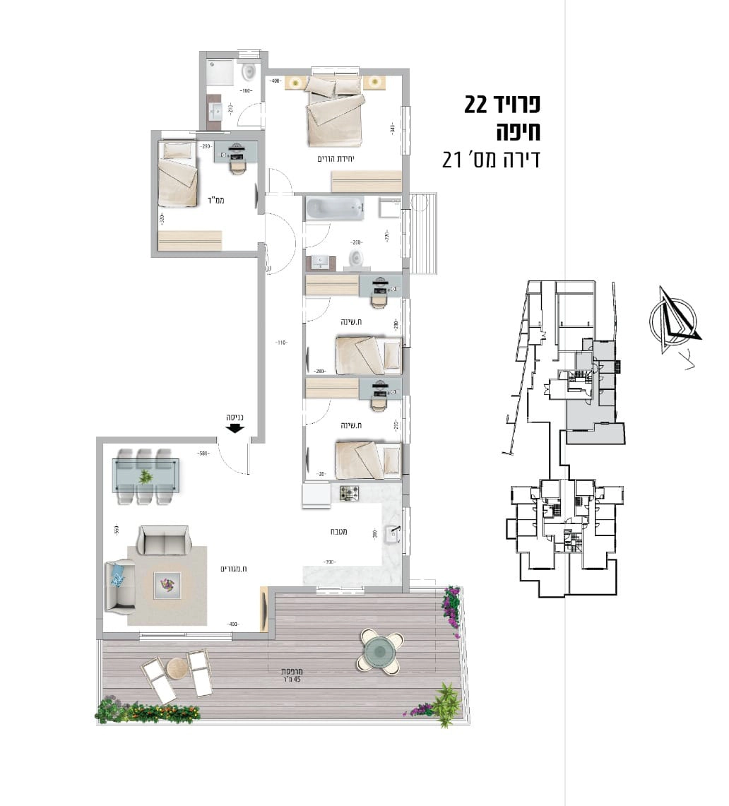 + מרפסות 12–45 מ"ר
