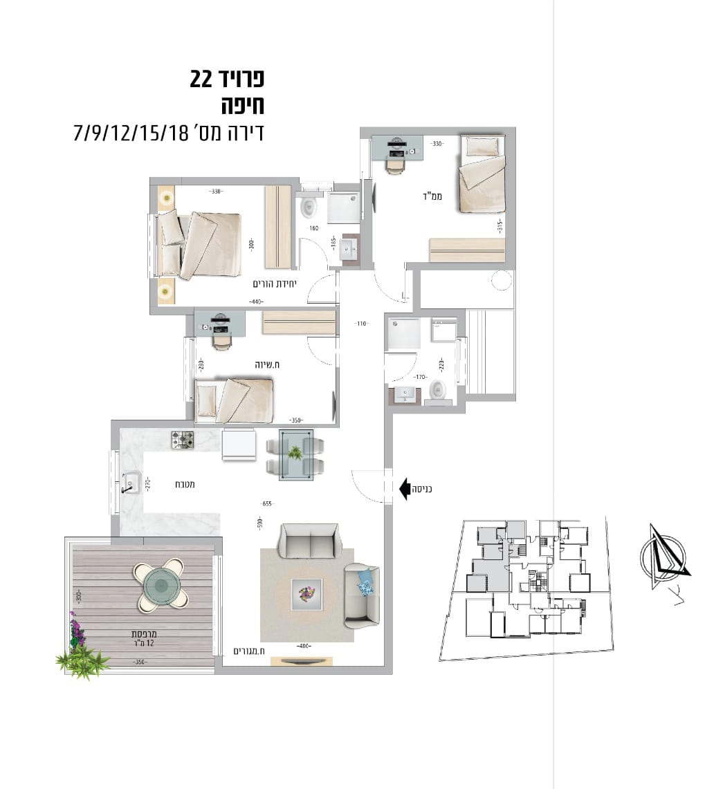 + 12 מ"ר מרפסת
